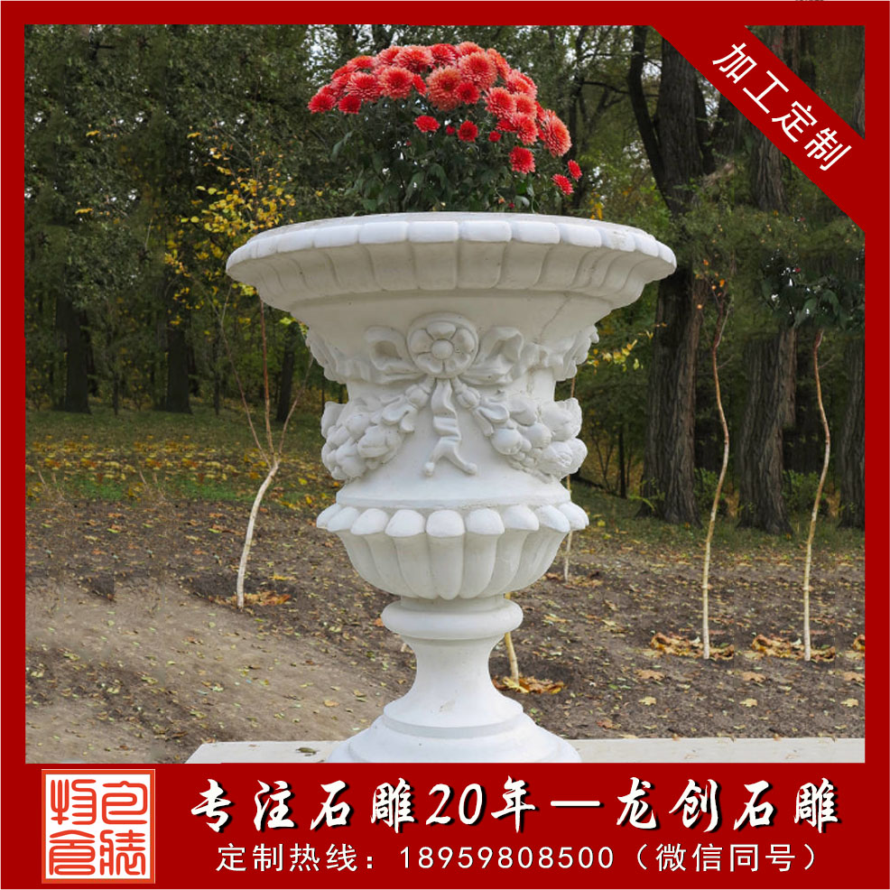 石雕花缽、石材花缽是通過石材雕刻制作而成的花盆雕塑作品,一般以砂巖、青石、花崗巖、大理石為材質(zhì),造型上大都以浮雕畫進(jìn)行盆壁的裝飾修飾。石材花缽既有花盆的實用性,又有很好的裝飾性,且質(zhì)地堅硬致密、強(qiáng)度高、抗風(fēng)化、耐腐蝕、耐磨損、吸水性低,顏色美觀,格調(diào)高雅,保養(yǎng)方便簡單,使用壽命長。以下介紹幾款常見石材花缽種類